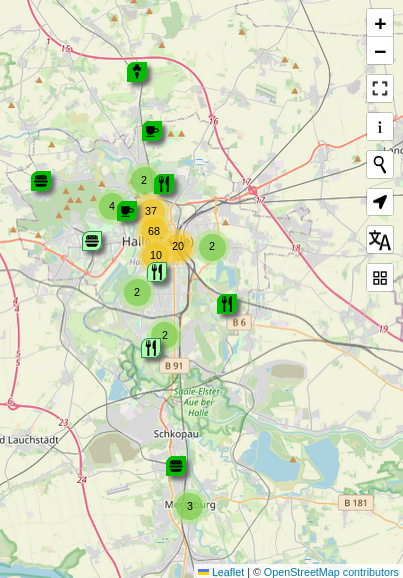 Schön, dass du zu uns ins schöne Halle gefunden hast! Hoffentlich hast du Hunger mitgebracht, denn das vegane Angebot wächst stetig und es gibt viel auszuprobieren. Die Vegane Stadtkarte hilft dir, dich im vielfältigen Angebot zurecht zu finden. Zusätzlich zu dieser Stadtkarte findest du noch drei weitere themenspezifische Karten auf unserer alten Website: